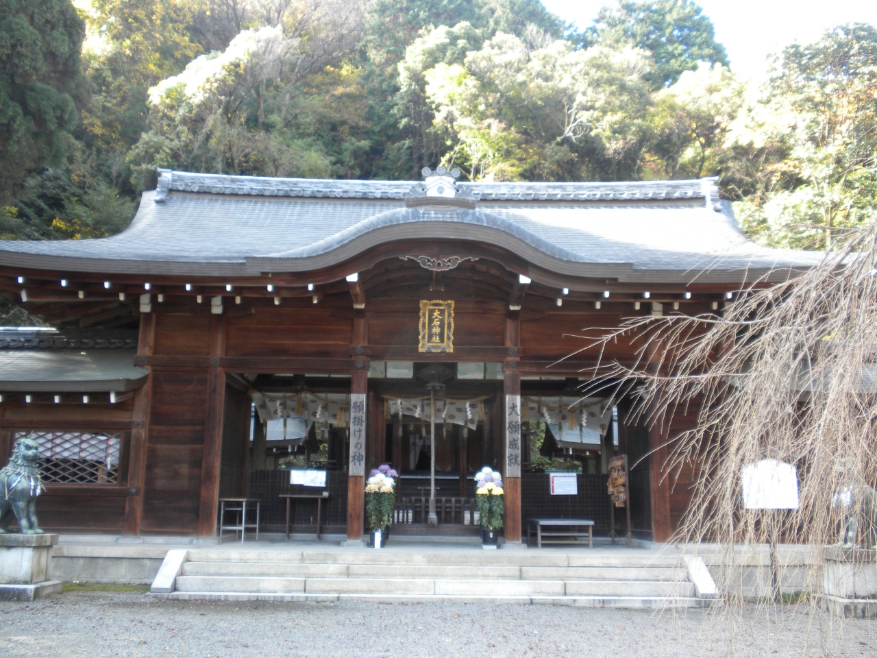 その途中に大石神社のバス停があります。