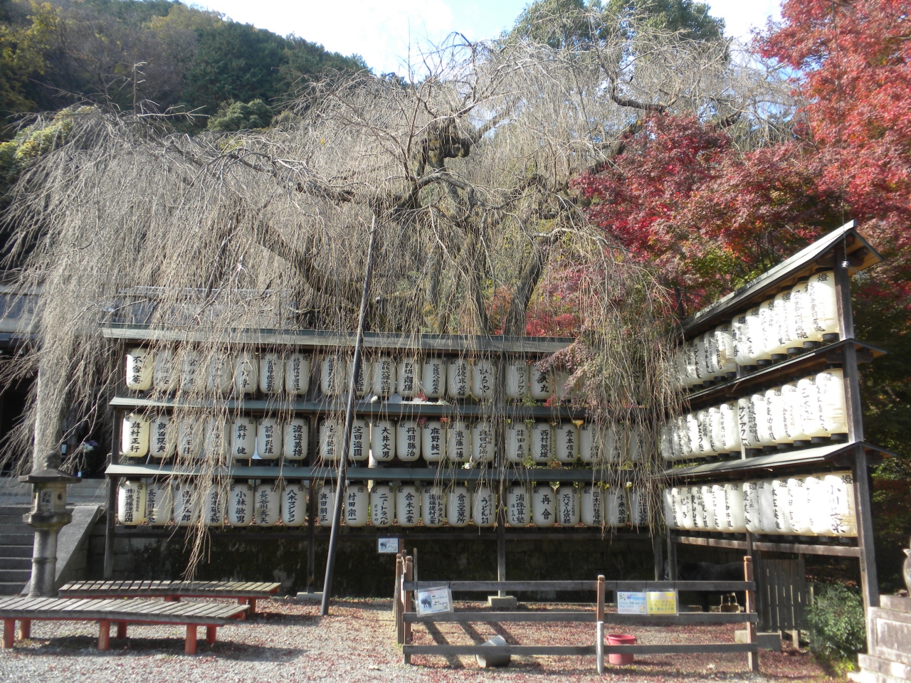 誰も居ない神社にはすっかり葉を落とした枝垂桜の巨木が覆い被さっていました。
