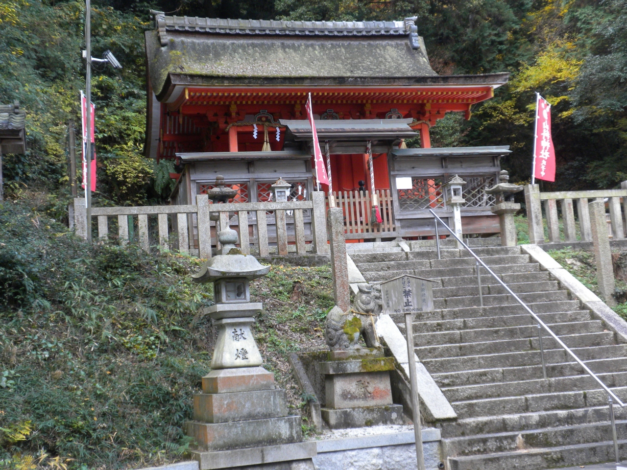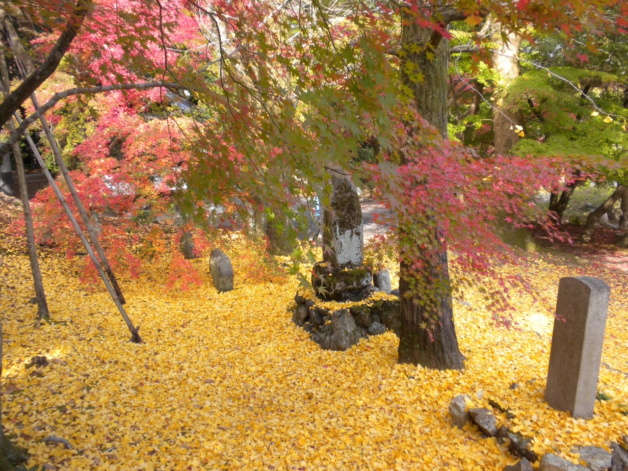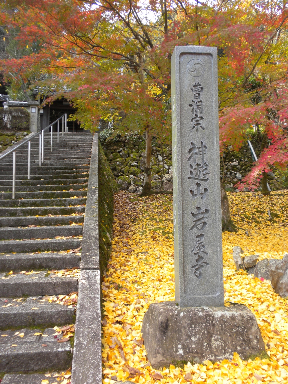 その参道階段下の紅葉と銀杏の黄葉とがそれはそれは素敵な色彩を放っていました。