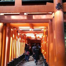大社の奥には稲荷山という山があるらしく、その山に登る為の通路としても利用されています。景観自体は良いのですが、人気観光地になった為、人が多すぎてあまり風情は感じられませんでした。