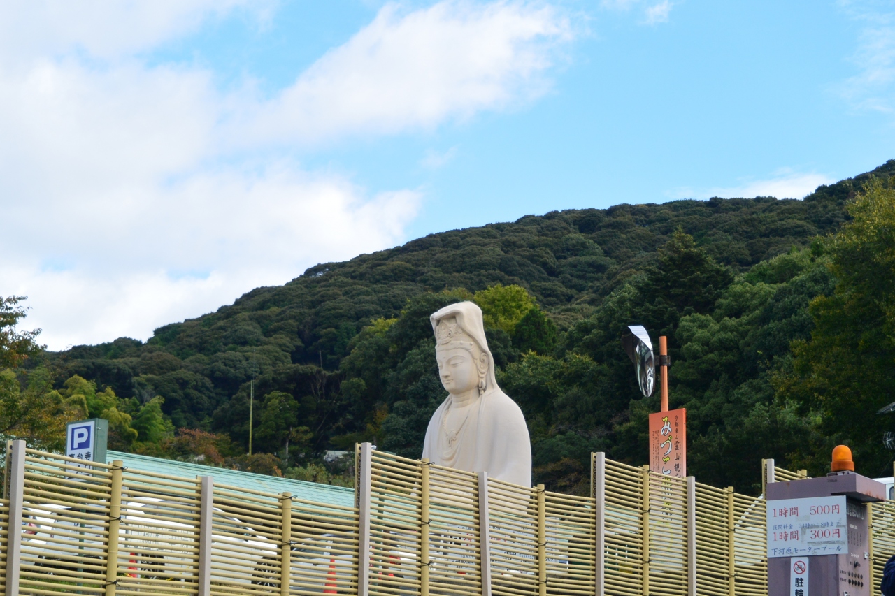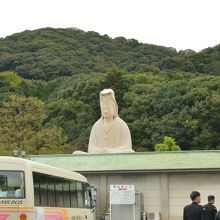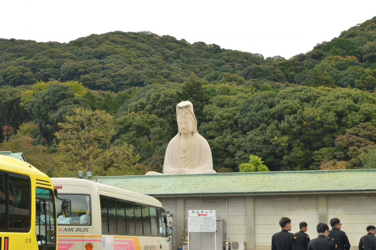 高台寺の駐車場の奥にある大きな観音様です。建物の中に入っていないので、どこからでもよく見えます。(高台寺のお庭を散策中、横顔を拝むことができました。)優しい顔をされていますが、戦後、戦没者の慰霊に建てられたものなのでそれほど古いものではありません。