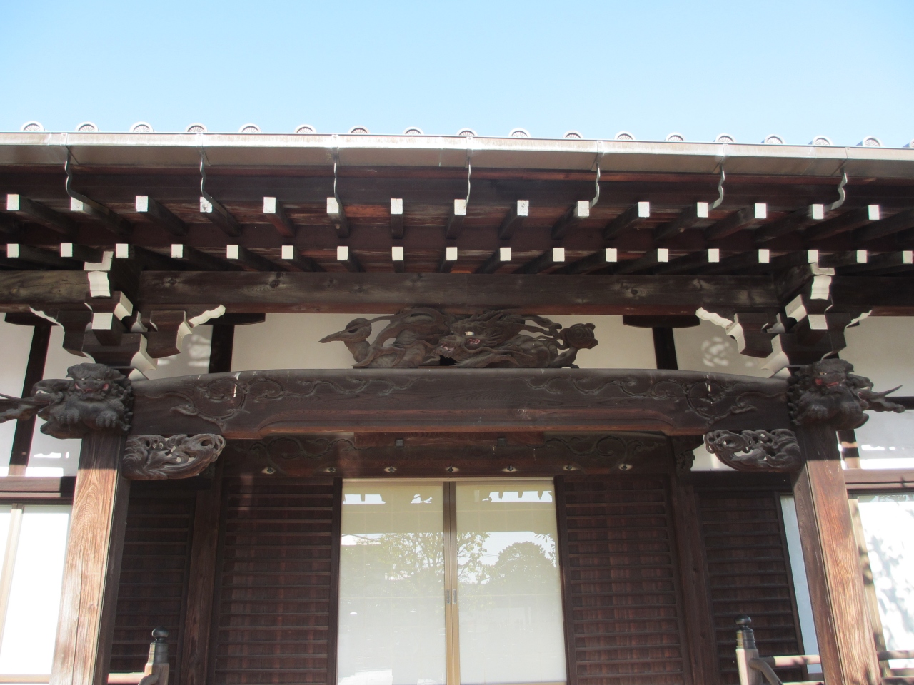 日暮里駅から桜通りを進み、ぎんなん通りを谷中方面へ進んだ先にある天台宗寺院です。本堂にある龍、獅子、象の彫り物は立派です。屋根の鬼瓦が特徴的で、玉を持っている龍がのっています。谷中の寺巡りで訪れた近くの寺院の本堂にはなかった物です。珍しいので谷中霊園に行かれた時に寄ってみてはいかがでしょうか。