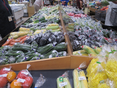 特産品販売施設「ふれあい直売十文字」には所狭しと地場産の野菜や果物が並んでいます。