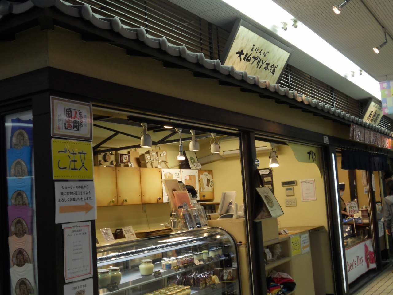 近鉄奈良駅の地下1階、改札の近くにある「まほろば大仏プリン本舗」です。