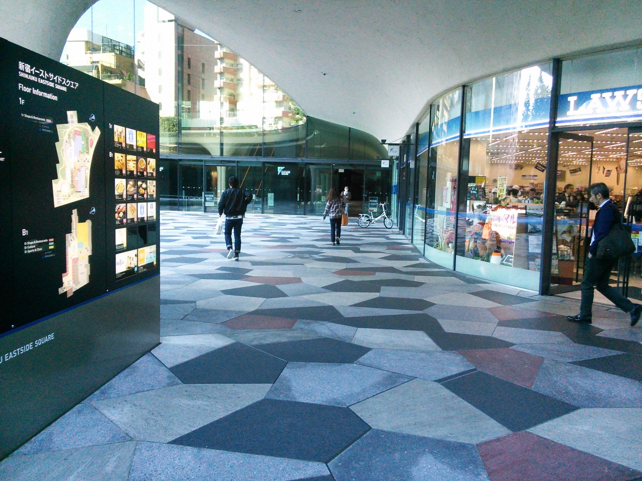 地下鉄から地上にあがると中庭になっておりコンビニ、回転ずし、レストランなど気軽にはいれる店があるさらに上に上がるとビルの正面入り口となる。タリーズコーヒーやおにぎり専門店などもあり平日昼はビジネスマンのため各店弁当を販売している。