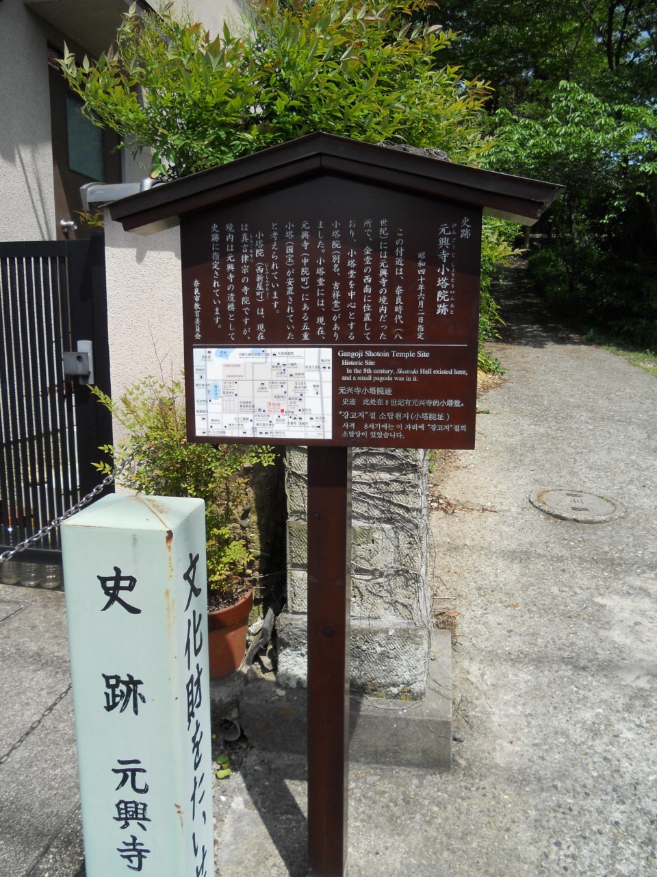 想像以上に細い路地が入り組んでおり、結構迷いながらの街歩きでしたが、「庚申堂」を探している途中で「元興寺小塔院跡」を発見しました。