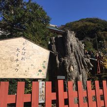 鎌倉駅から徒歩で10分くらいです。土曜日の朝でしたが、駅から小町通りを歩いて到着です。とにかく、ずっとひが多く歩くのも大変でした。天気が良かったからか、日がいいのか、お宮参りの参拝客が大変に多かったです。社殿の前の大銀杏が倒れたので、その根っ子が残されていました。
