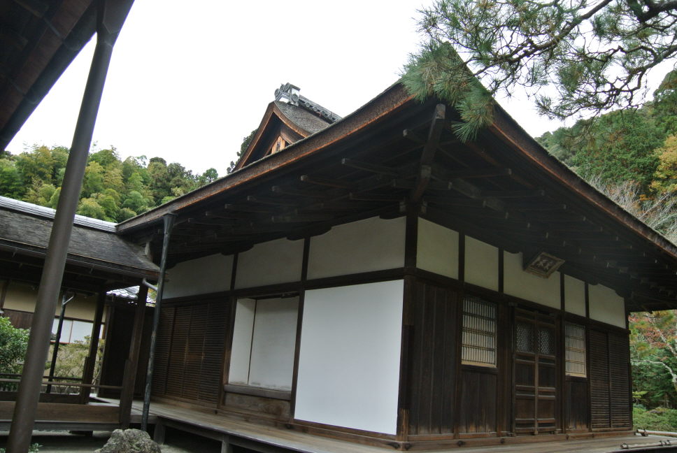 銀紗灘を過ぎて左手にありますが、同じ国宝でも、外見上は銀閣(観音殿)のようなインパクトはありません。これが国宝と知らなければ、そのまま通りすぎてしまいそうなぐらいですが、こちらは外よりも最古の書院造という内部のほうに価値があるのだと思います。