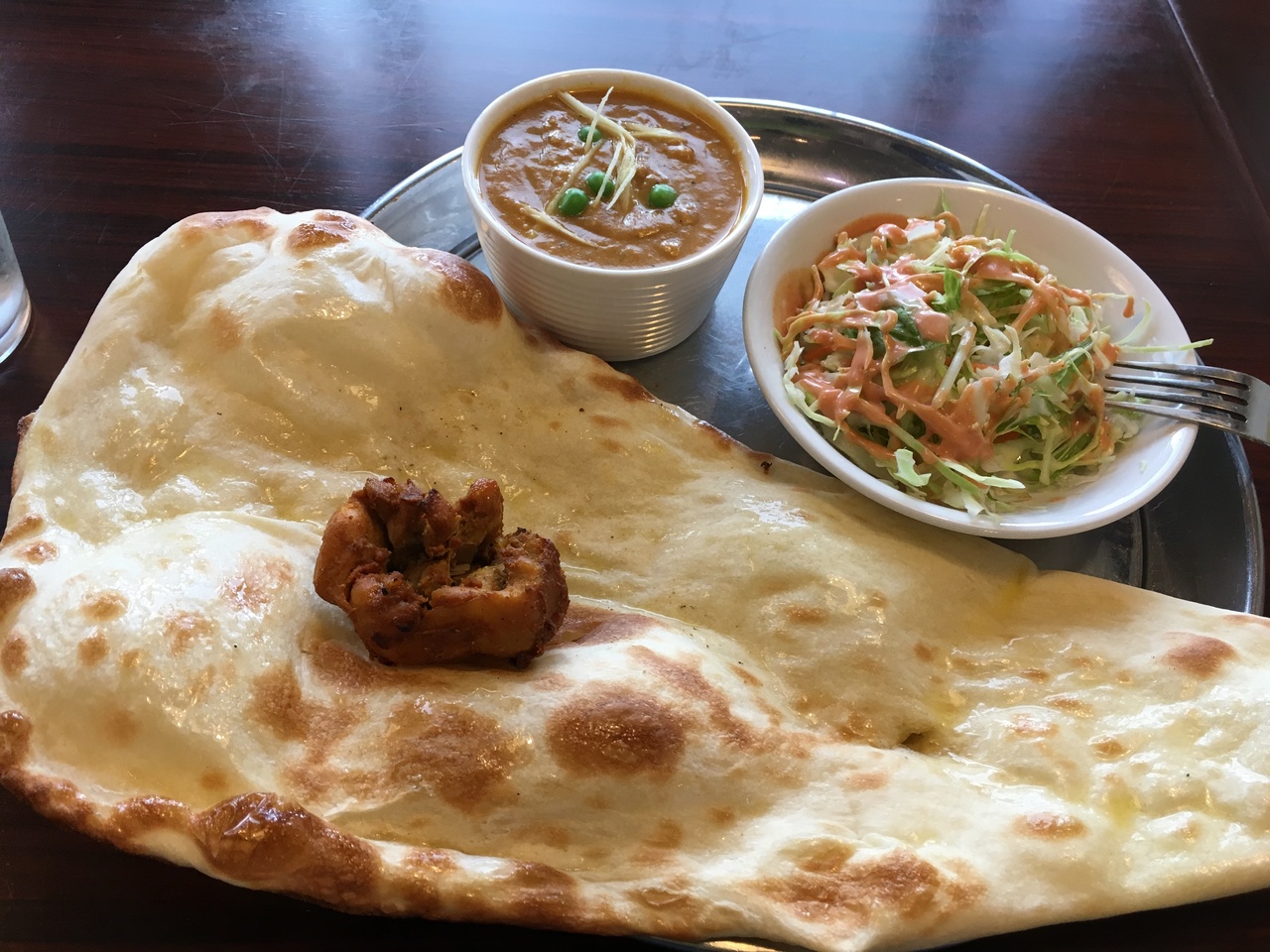 日本人向けに食べやすいカレー。香辛料もあまり強くなく、脂も控えめ。ランチのセットは4種類から選べ、チキン、シーフード、野菜、キーマがある。本格カレーを期待すると、ちょっと物足りないが、及第点。土日は1050円以上のセットのみ。カレー、サラダ、飲み物、デザート(マンゴーヨーグルト?)、チキンティッカで1080円だった。