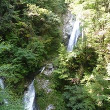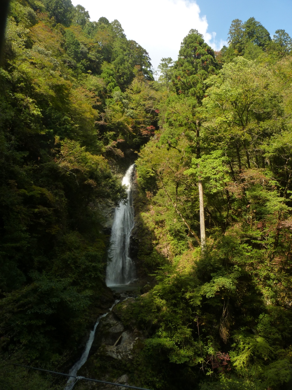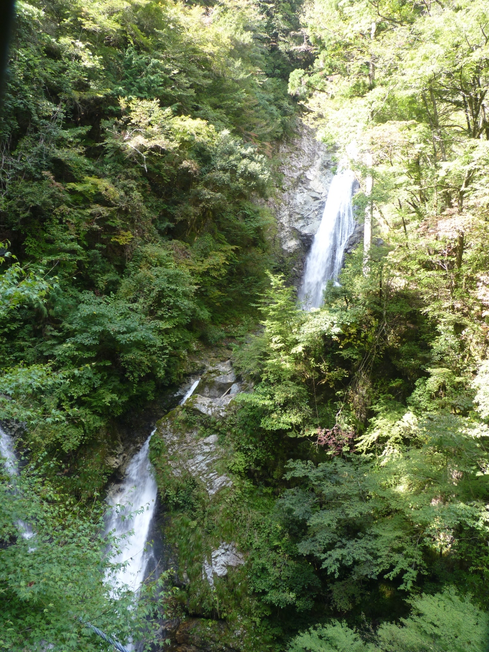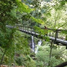 原リンゴ園に立ち寄り、そこから山奥へと車を走らせると直ぐ目の前に駐車場らしきものが見える。車を止め山道を登ってゆくと入場ゲートがある200円を払い更に進むと吊橋が見えてくる。つり橋の終点まで行くと滝がはっきりと見えてくる。この時期は未だ紅葉が早く10付き中頃よりと聞く