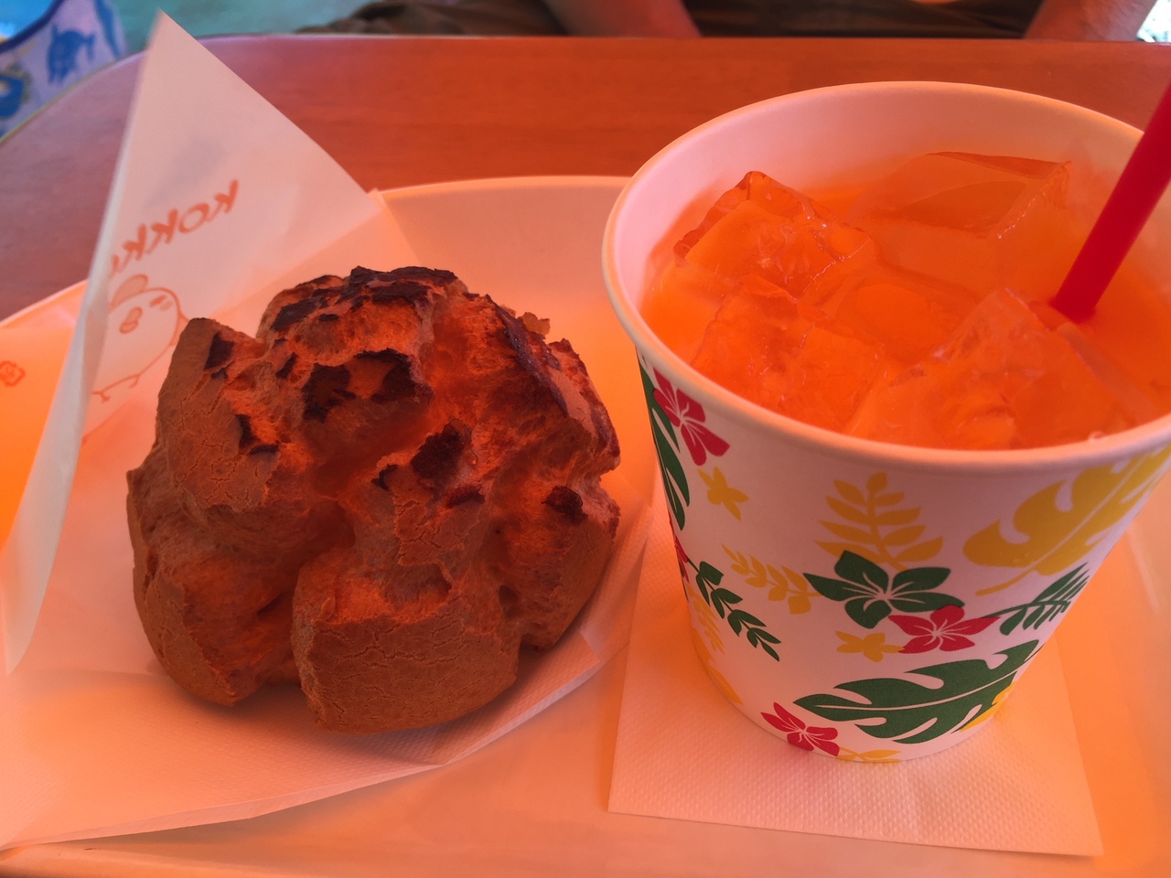 シュークリームとたんかんジュースを買ってテラス席でいただきます。