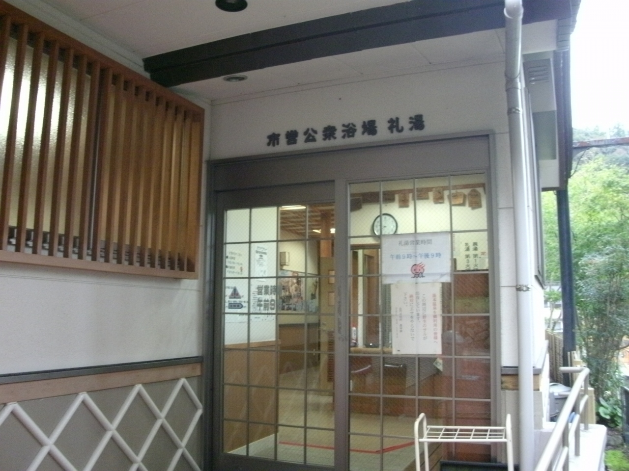 音信川に沿って並ぶ温泉街の中ほど、市営公衆浴場の「恩湯」の横の坂道をほんの少し上がったところに市営公衆浴場「礼湯」があります。