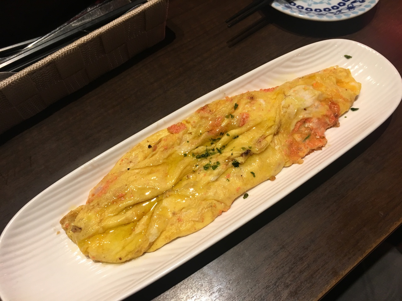今回、ワインやサングリアを飲みながら、明太子が入ったオムレツ、チキンソテーなどを食べました。