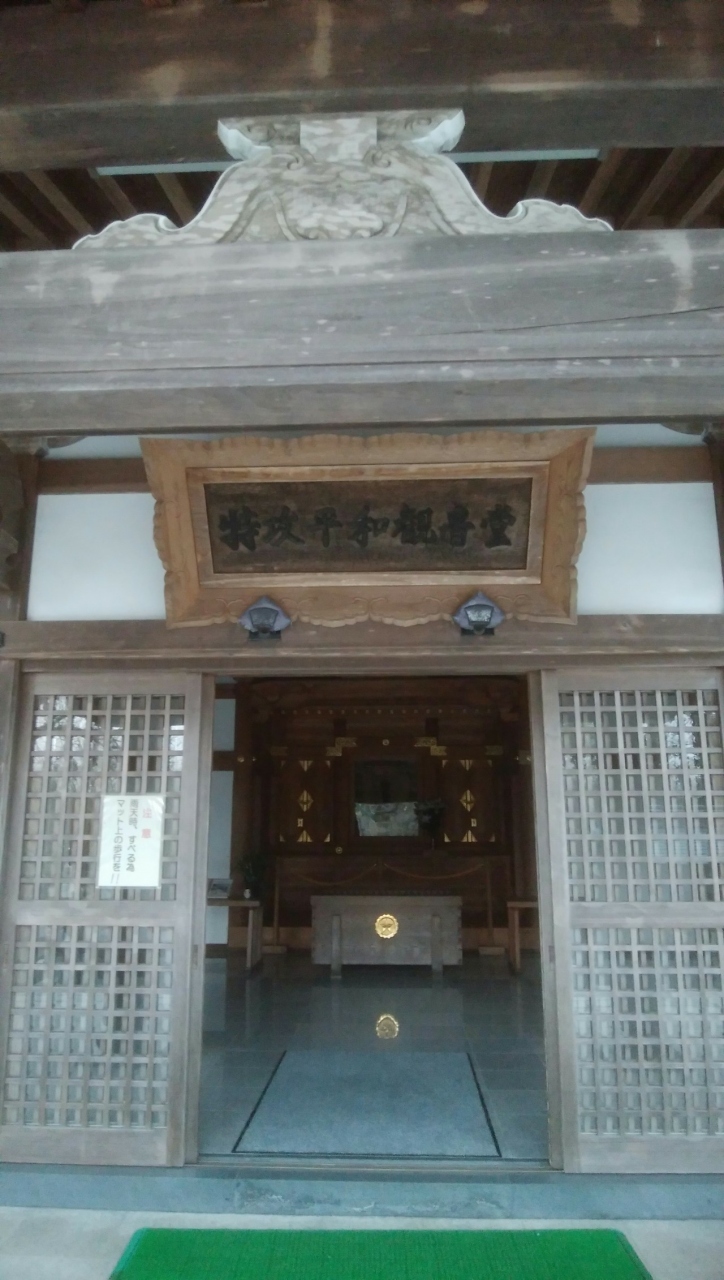 知覧平和公園の一画にあって、知覧特攻平和会館のお隣に、護国神社と並んで建っています。平和公園の大きな駐車場のすぐ横でもあるので、車で行った場合のアクセスは良好です。境内を入り奥へ進むと標準的なサイズのお堂があって、周囲とは大きな木々などと隔てられていませんが、ひっそりと落ち着いた空間になっています。先の大戦で御国のために英霊となられた、若き特攻隊の方々をお祀りしている厳かな雰囲気があります。特攻平和会館と合わせて訪問する場所だと思います。