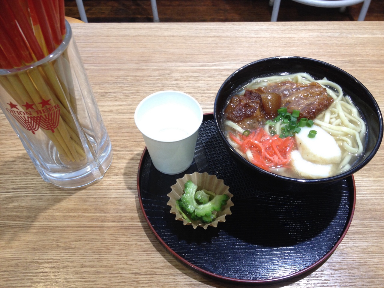今まで何度か足を運んだことはありましたが、店内をじっくり見たことがなかった為か店内のイートインコーナーを見落としていました。大好きなブルーシールアイスクリームあり、沖縄そばあり、沖縄の天ぷらやサーターアンダギーもありました。今回はそばだけでしたが、色々食べてみたいと思います。