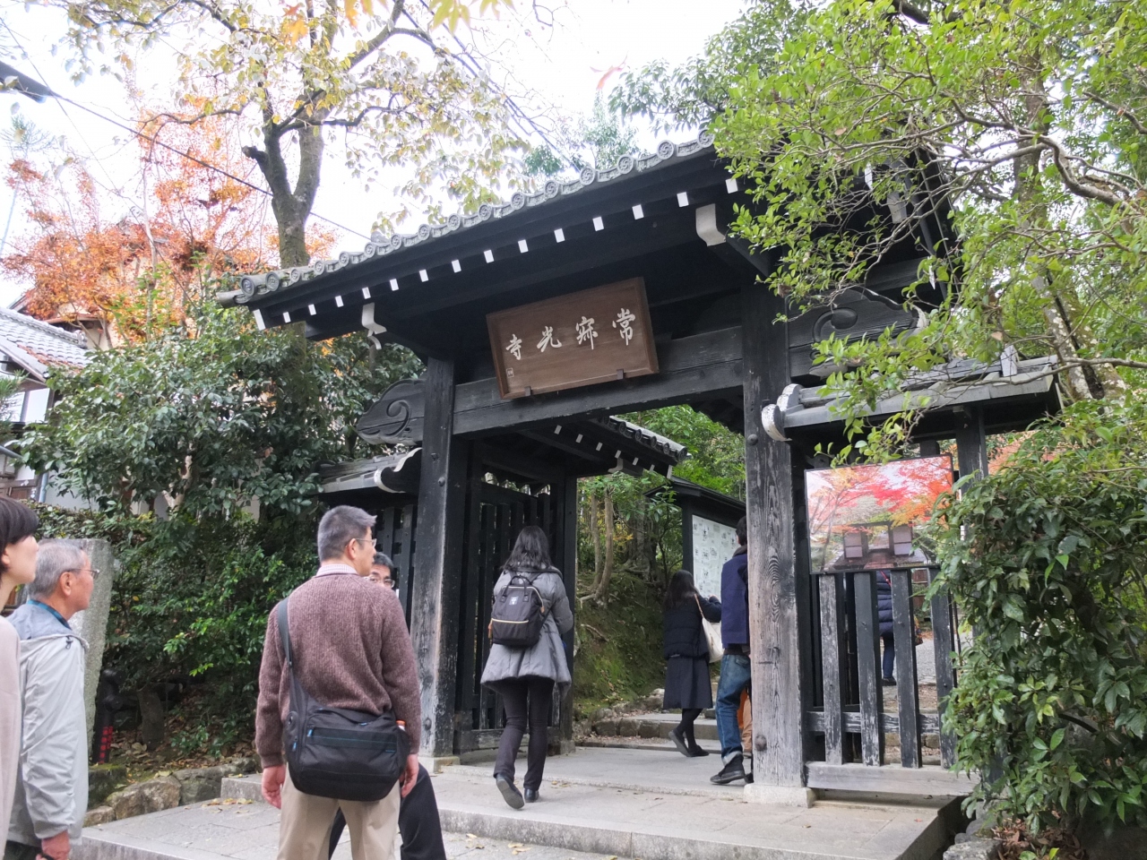 常寂光寺の入口にあるのがこの山門です。トロッコ嵐山駅から歩いてくると、静かな嵯峨野の小路の中に、左側に突然この山門が現れるといった感じです。静かな小路の中で、この山門の前だけは、大勢の人があふれていました。