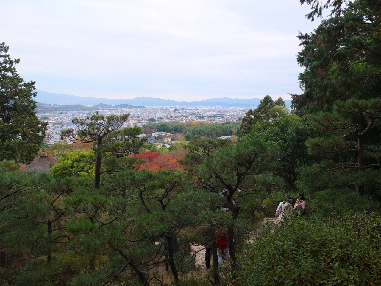 百人一首の編さん地として有名な小倉山の山腹にあるのが、この常寂光寺です。そのため、入口の山門から、お寺の中に向かって、ずっと坂になっており、その坂の一番上の方に多宝塔があります。多宝塔の更に上には展望台があり、そこから京都の街を見渡すことができます。