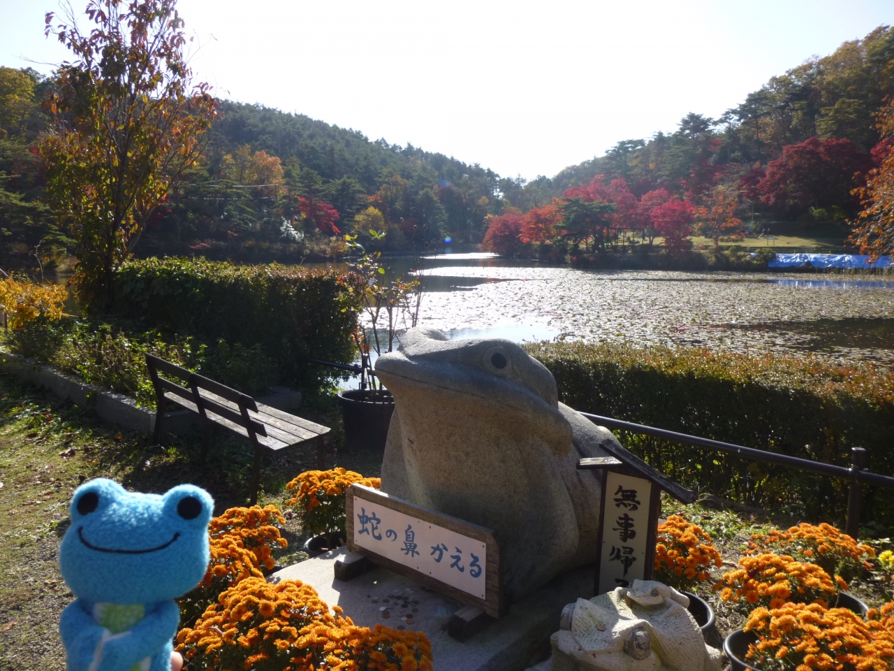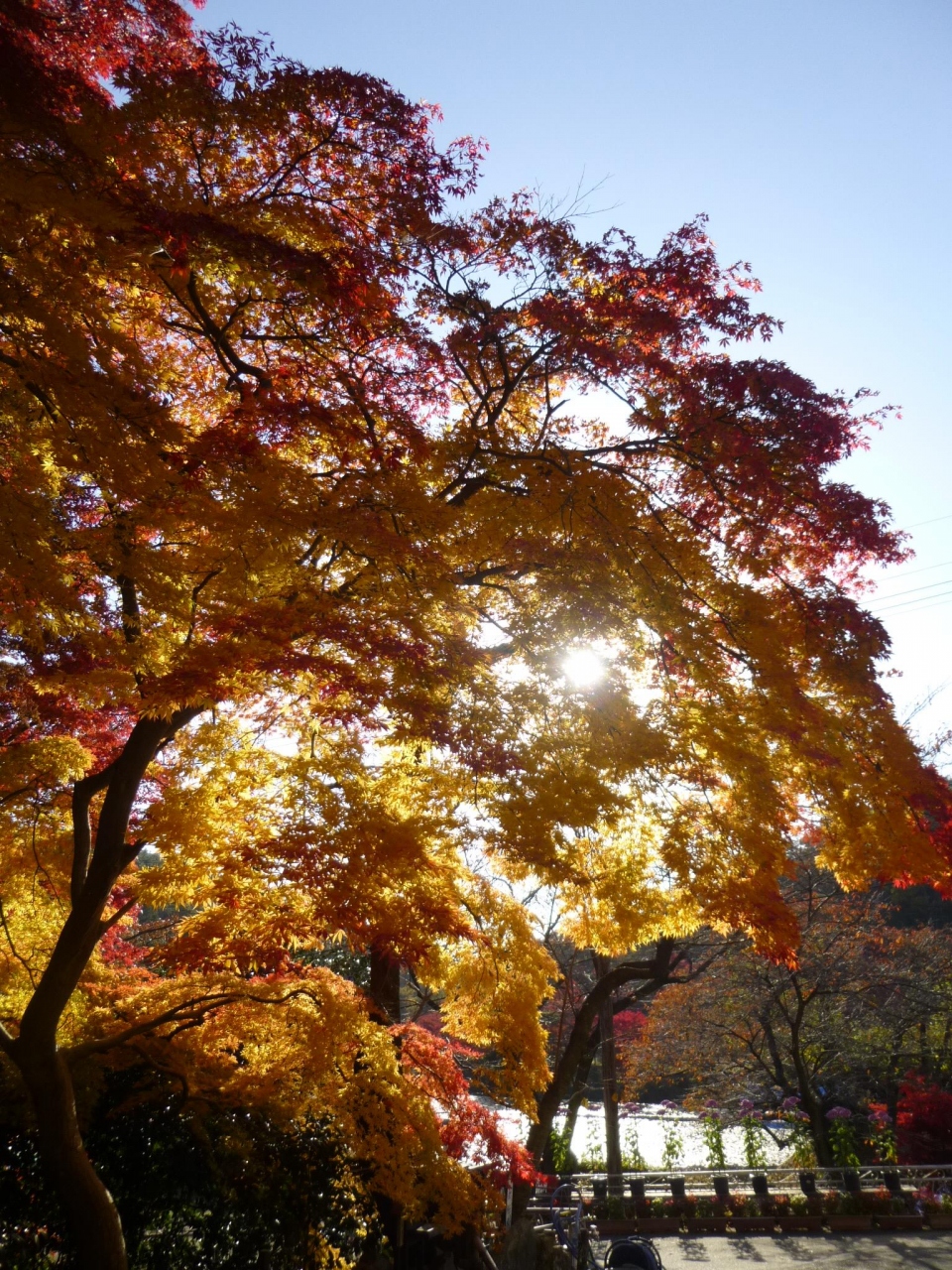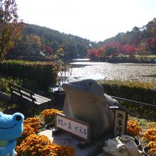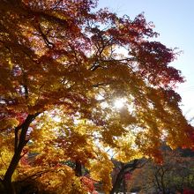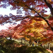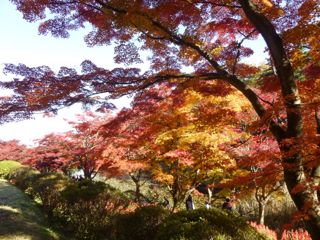 大きな池に沿うように傾斜した緑豊かな園内は広く、紅葉が見頃でした。