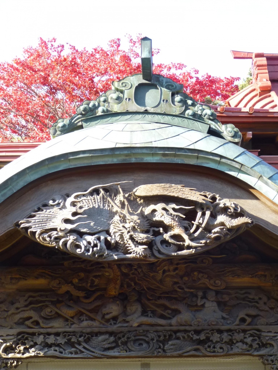 園内には「蛇の御殿」(有形文化財)があり、正面の彫刻(日光東照宮を模したといわれているそうです。眠り猫もいました!)をはじめ、御殿内には伊藤博文の書や、狩野派による障屏画などが飾られ、どれも見ごたえがあり素晴らしいです。