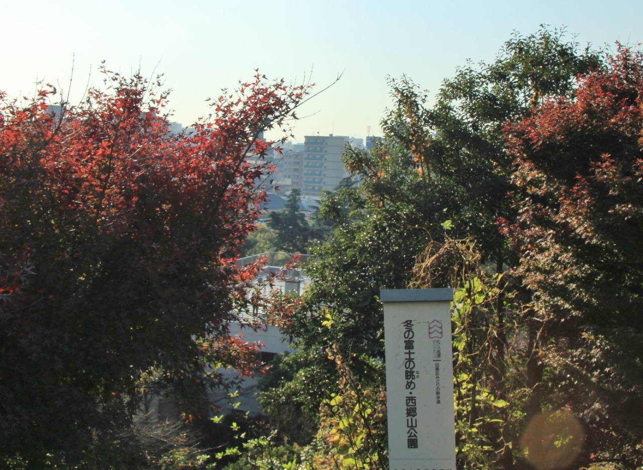 目黒区総合庁舎の屋上にある目黒十五庭から富士山をばっちり見ることが出来たので西郷山公園にも足を伸ばしました。西郷山公園から富士山が見られる言われていましたがこれまで見られたことがなかったので期待して行きました。しかしながら、ビルの上に富士山の山頂のごく一部を見ることが出来るだけでガッカリでした。
