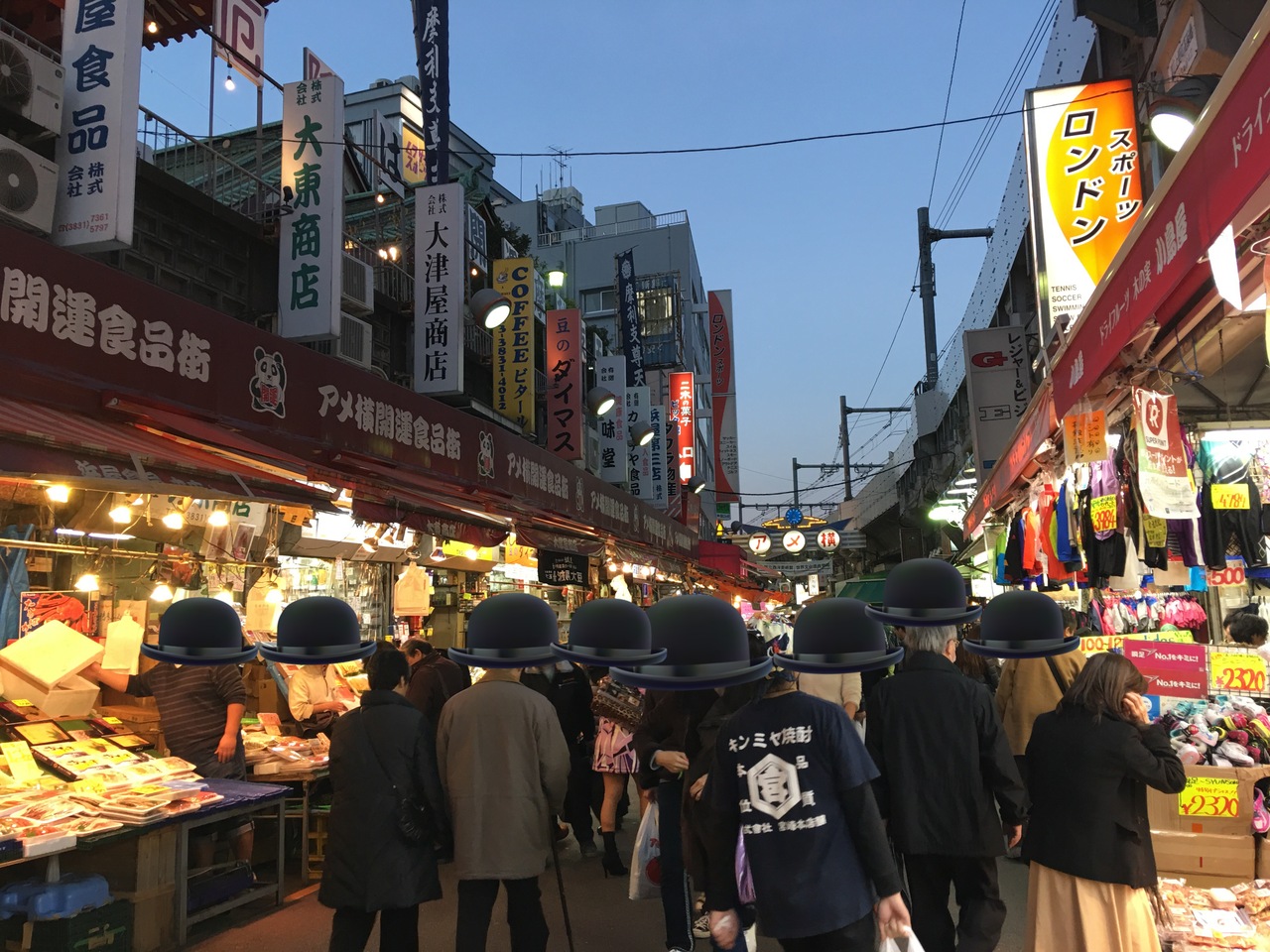 JR山手線の御徒町駅から上野駅にかけて連なる商店街で、たこ焼きや焼き小籠包などのB級グルメ、海鮮食品、野菜果物、乾物、衣料品からチープなアクセサリーなど、見て歩いて楽しかったです。下町風情もあり、外国人観光客が多く訪れていました。「閉店セールでカバンが全て3000円」と言った触れ込みには注意しましょう。