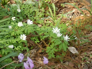 上毛線岩舟駅から徒歩50分カタクリの里に到着。園内散策。カタクリが満開で見事でした。ミズバショウ、アズマイチゲ、ニリンソウも見られました。園内からハイキングコースに入り、30分で 三毳山(青竜ケ岳)(229M)頂上に到着。山頂から南へ下り50分でカタクリ園に到着。カタクリ群生地には、薄いピンクあるいは濃いピンクの花のカタクリが広い範囲にわたって咲き乱れるほどに咲いていました。こんなに多くのカタクリを見たのは初めてです。さすが花の百名山にふさわしい光景でした