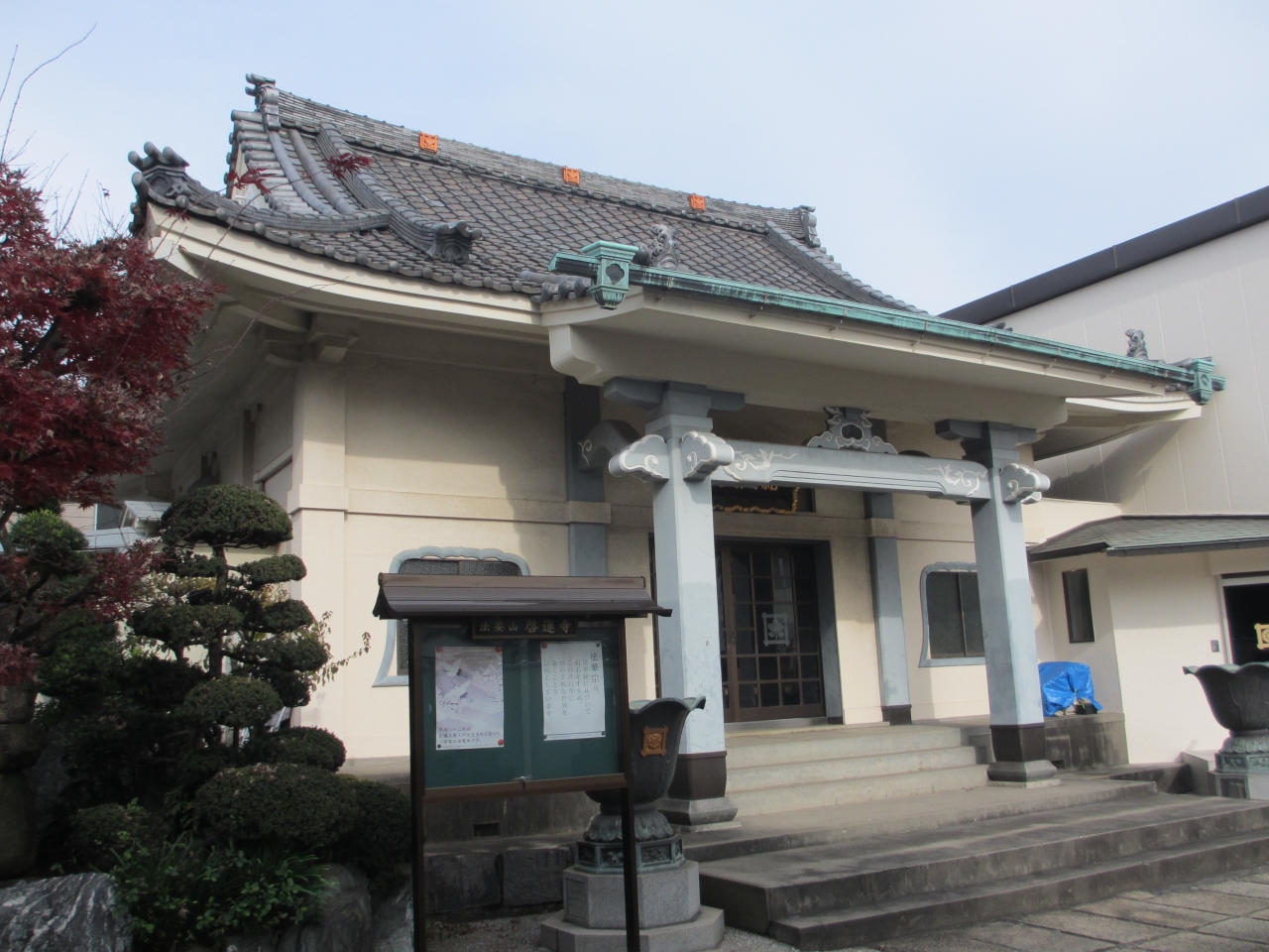 諏訪台通り(安全横丁)にある法華宗寺院です。本堂はコンクリート製です。木造毘沙門天像がありますが、お堂が閉められていて見ることはできません。山門を入って右手にいくつか石碑があります。石造の碁盤の上に石造の樽のような物がのせられている碑は珍しいです。碁盤に彫られている字が読みにくく、説明板がないのでどのような意味があるのかわかりませんが興味をそそられます。杵屋六三郎之碑などがまとめられて設置されています。石碑に興味がある方は寄られるといいでしょう。