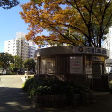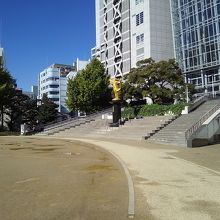 土の広場とちょっとしたベンチ、ナディアパークへつながる広い階段がある程度です。