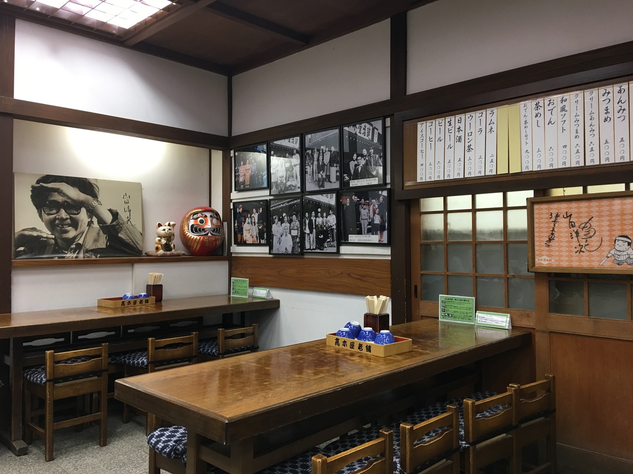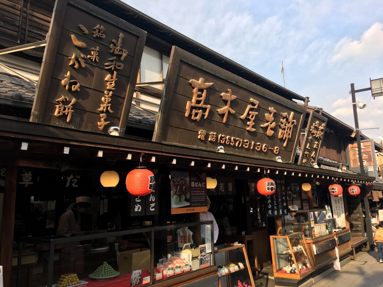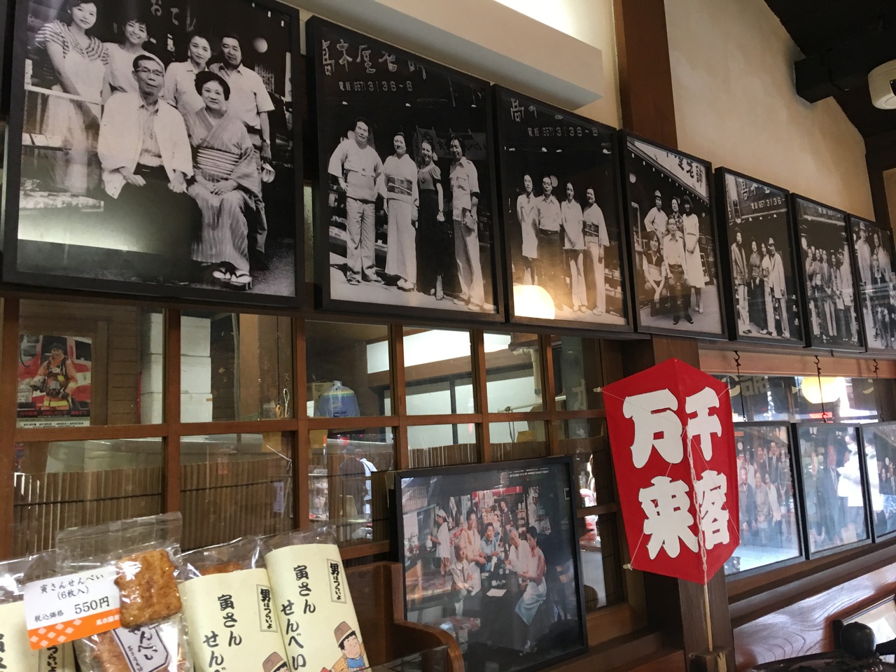 高木屋老舗といえば映画「男はつらいよ」で何十回も撮影で使用されたお店で、多くのお年を召した日本人観光客が立ち寄っていました。参道の両脇に店舗があり、中でお茶をするもよし、団子やお菓子を買って帰るのもよしです。時間があれば店内で甘味をいただきましょう。草団子を食べながら、壁にかけられた、撮影時やキャストとの写真を見るのは楽しかったです。懐かしさを感じました。