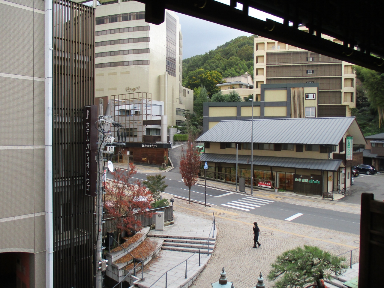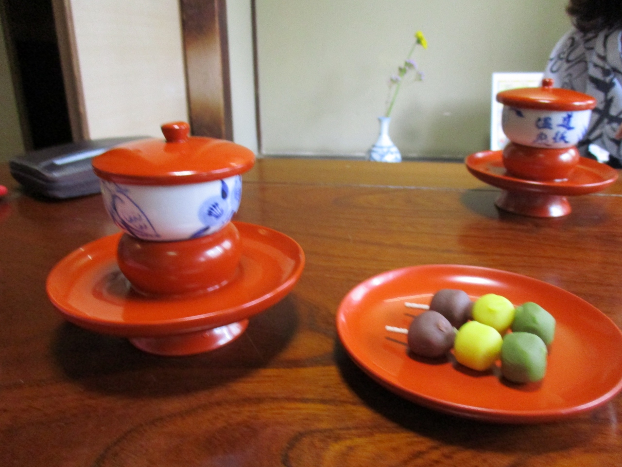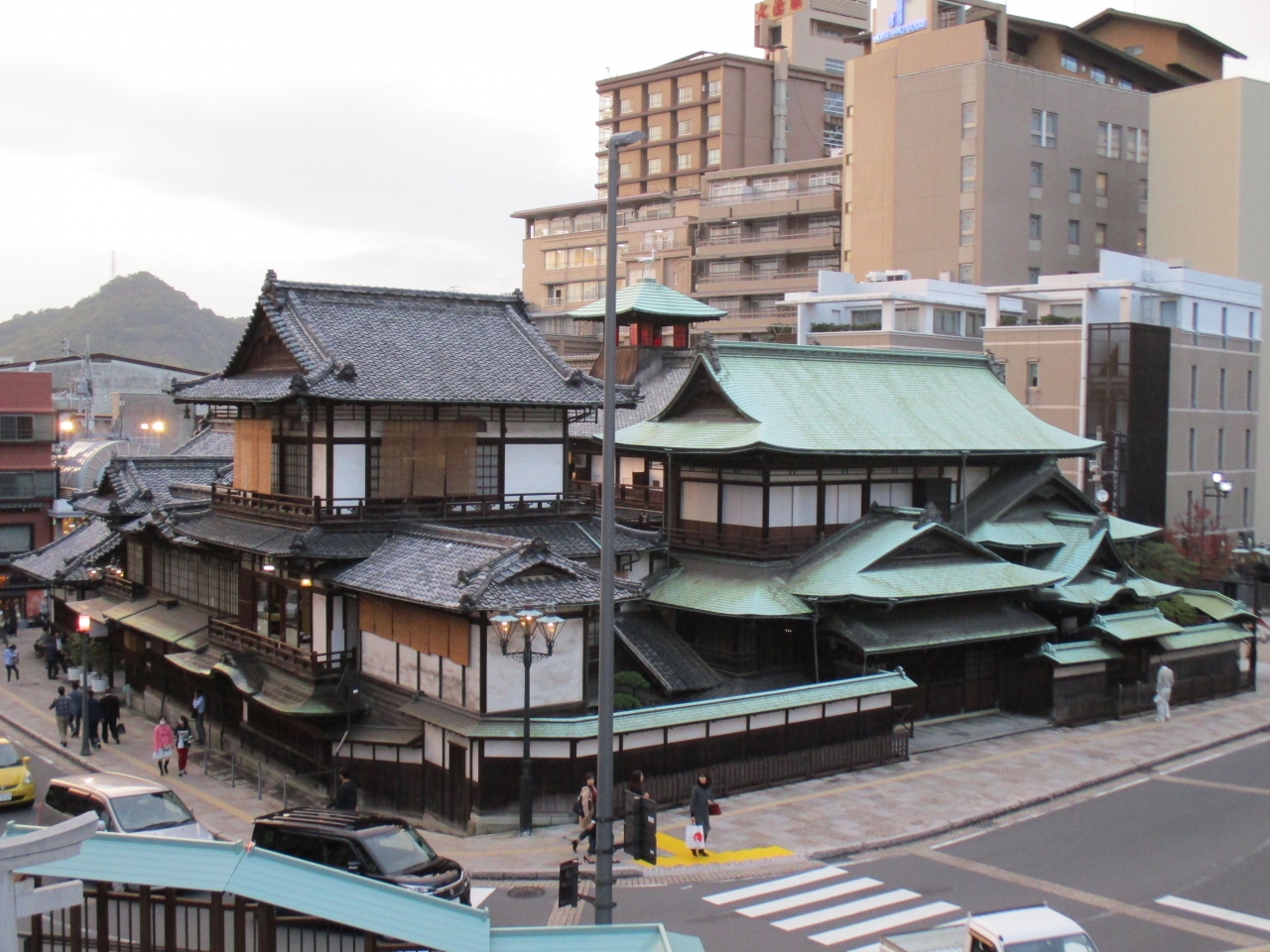 入浴後は個室で坊ちゃん団子とお茶のサービス、縁側からは温泉街の様子を眺めることもでき、制限時間一杯くつろぎました。退室後には、3階にある坊っちゃんの間と2階の又新殿を案内してもらいました。