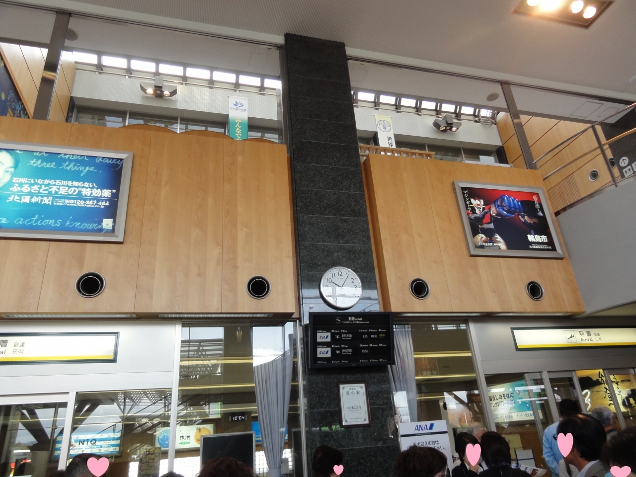 空港も道の駅になるですね。到着後、集合の合間に能登観光のパンフレットを多くの方が調達してました。帰路に時間があったので売店利用しました。1階にミニコンビニのような店と、2階に地酒や干物、ラーメン、民芸雑貨、お菓子等の土産物店が入っていました。どちらにも芋菓子や銘菓の単品販売あり自分用に購入出来ました。レストランもあるようですが、見る時間もなかったです。