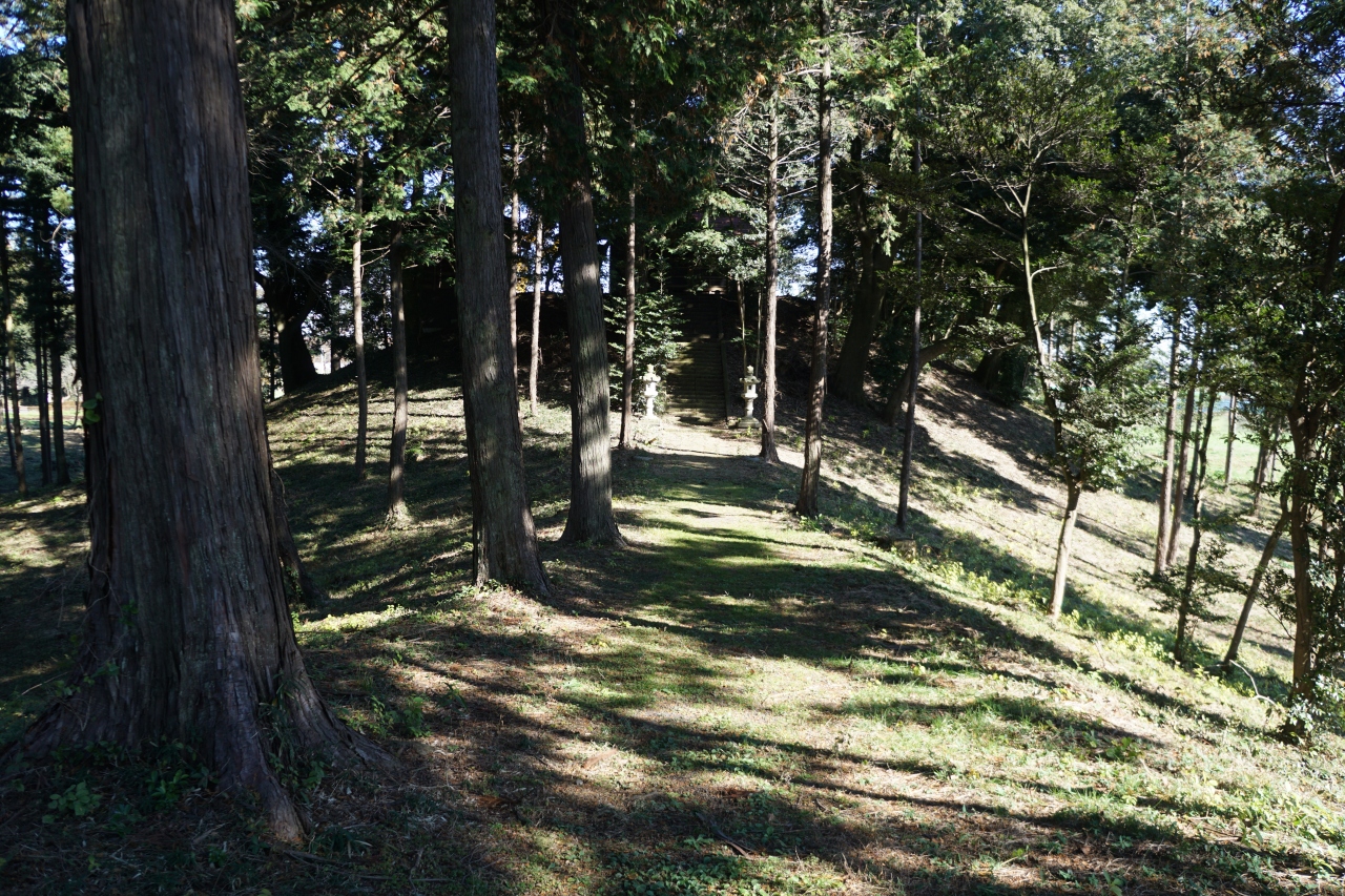 摩利支天塚古墳は、琵琶塚古墳とセットになったような位置にあって、ともに国の史跡となっています。こちらの全長117mは少し琵琶塚古墳より小さいですが、造られたのは古墳時代中期の5世紀末とこちらの方が少し先。