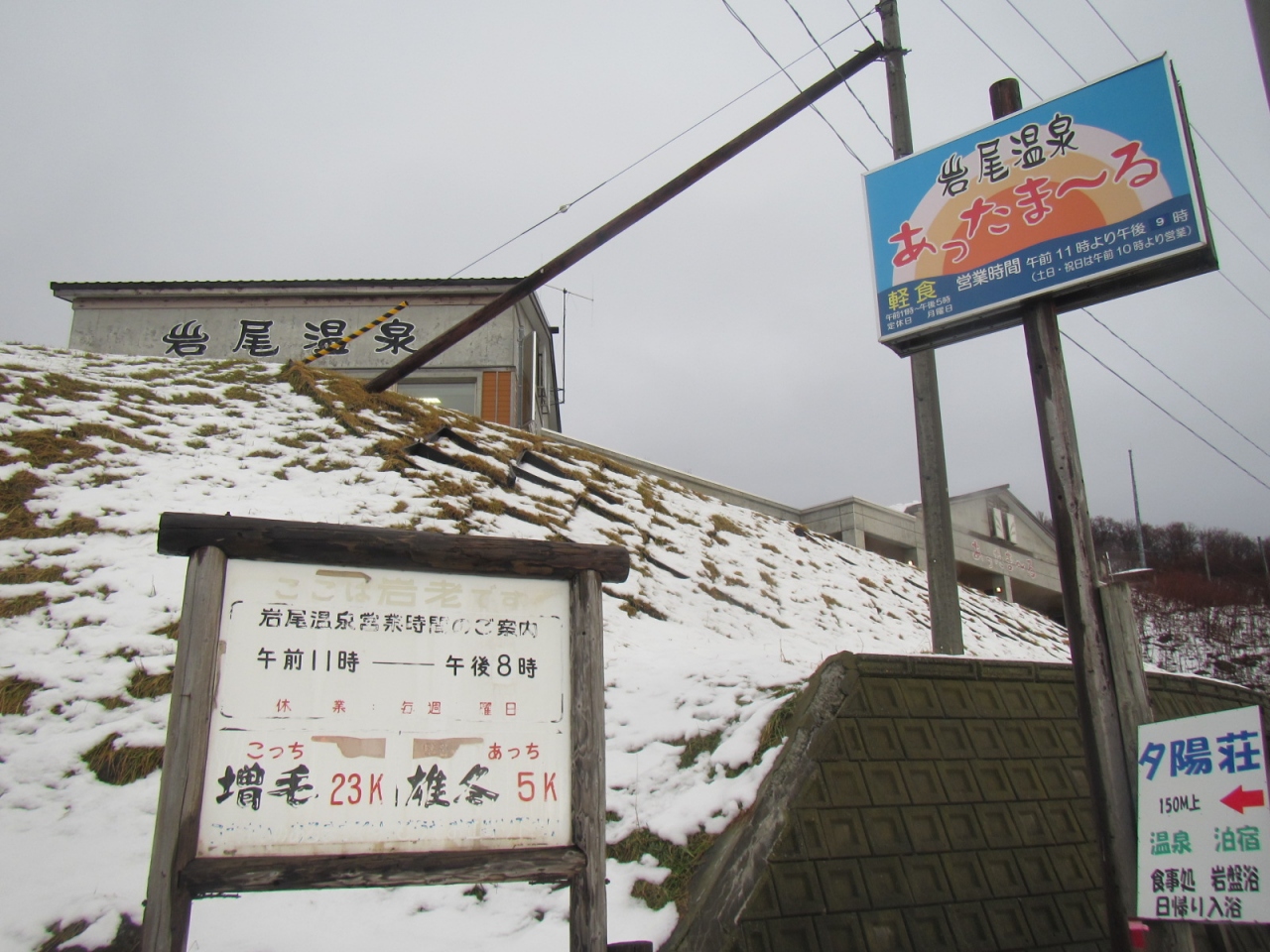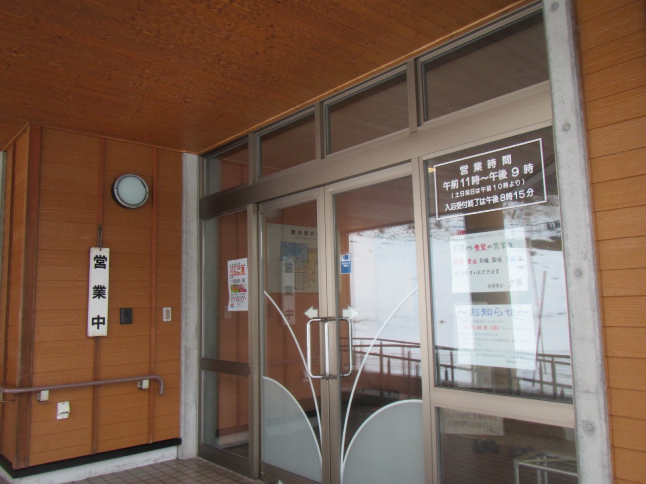 「あったまーる」では、日帰り温泉と食事が楽しめますが、冬期は休業、食事はランチタイムだけのようですので、注意が必要です。