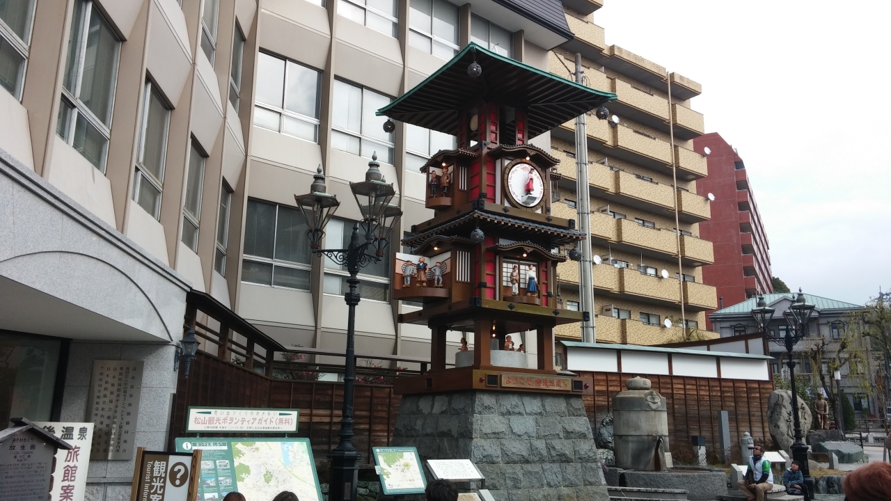 坊っちゃんカラクリ時計は松山道後温泉の名物時計塔です。路面電車の駅の前に人が集まっているところに行ってみれば坊っちゃんカラクリ時計が立てられているが、この時計は30分ごとに素敵な変身をしながら夏目漱石に出てくる小説のキャラクターが出てきて動くのを見ることができて、本当に楽しかった。