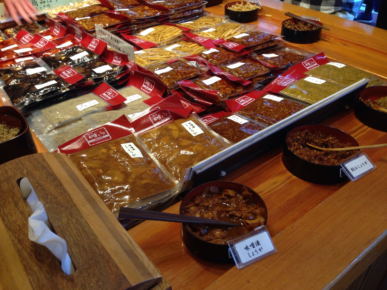 小町通りにあるお店で 結構な人が店内に居るのが見えた。漬物屋さん、試食をバンバン出していてこれが 大きいひときれのまんまだったりと 大盤振る舞い。