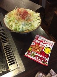 スカイツリー店に行った時に頂いたサービス券があったので月島もんじゃストリートでも「だるま」さんに行ってみることに。スカイツリー店では自分で焼くか焼いてもらうか聞いてくれたのですが、こちらは注文した材料が置かれただけでした。自分で焼くスタイルと解釈して焼きました。サービス券は鉄板焼き930円以内のものを1つ選んでそちらが無料でした。このサービス券、毎回使えるみたいです。