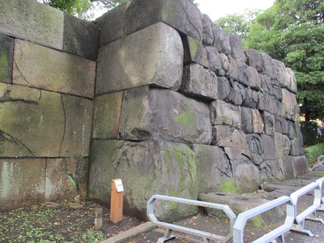 地下鉄大手町駅C10出口から内堀通りの交差点を渡り和風土橋の大手門橋渡り皇居東御苑入口の大手門をくぐり三の丸尚蔵館や大手門休憩所を右手に見ながら進むと同心番所の手前に見事な石垣の大手三の門跡があります。石垣はそんなに高くないので気にせず通りすぎてしまうかもしれませんので要注意です。見事な大きな四角の石垣のみで門が無いのが残念です。