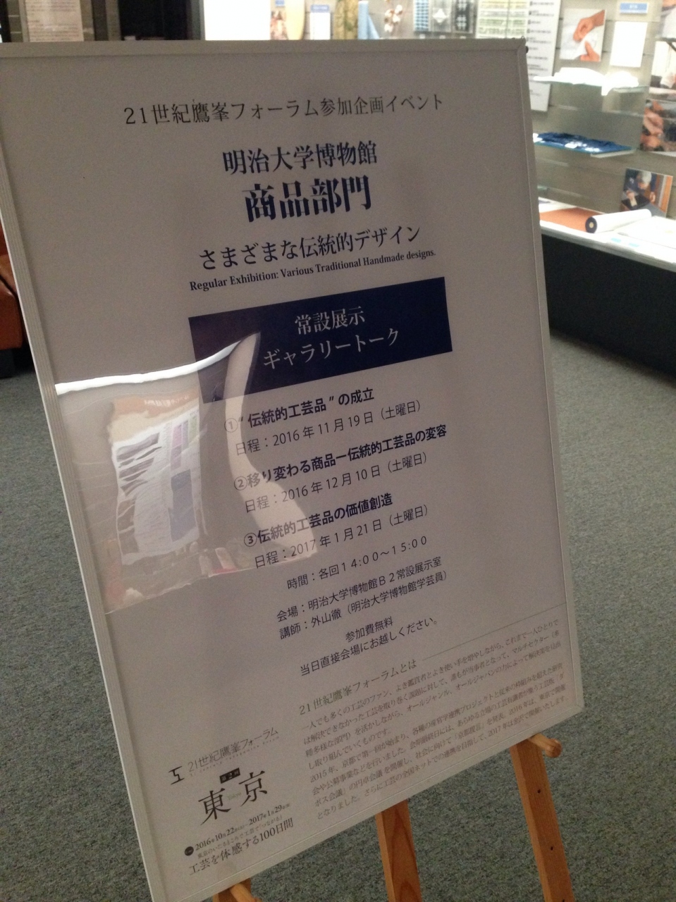 明治大学内にある博物館の1つで 伝統工芸品なんかを紹介しています。一見するとアンテナショップや商工会議所のような雰囲気ではありますが、個人的にはツボに入る展示もあり染の技術の部分などは熱心に見入ってしまいました。