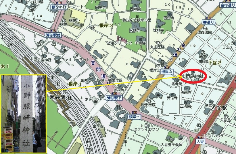 その後、寛永2年、忍ケ岡に東叡山寛永寺を創建するにあたり、小野篁の上野照崎神社を遷座することとなり、坂本村の長左衛門稲荷社が鎮座していた根岸の地に移転したといいます。