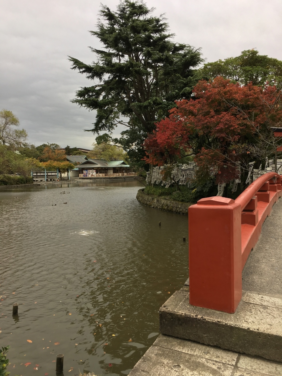 鶴岡八幡宮の境内にある源平池を訪問しました。大鳥居をくぐり、太鼓橋がありその右側にあるのが源氏池。左側が平家池で二つ足して源平池です。池の中には島があり弁財天がありました。朱色の橋が印象的でした。紅葉が池の中に映り綺麗でした。