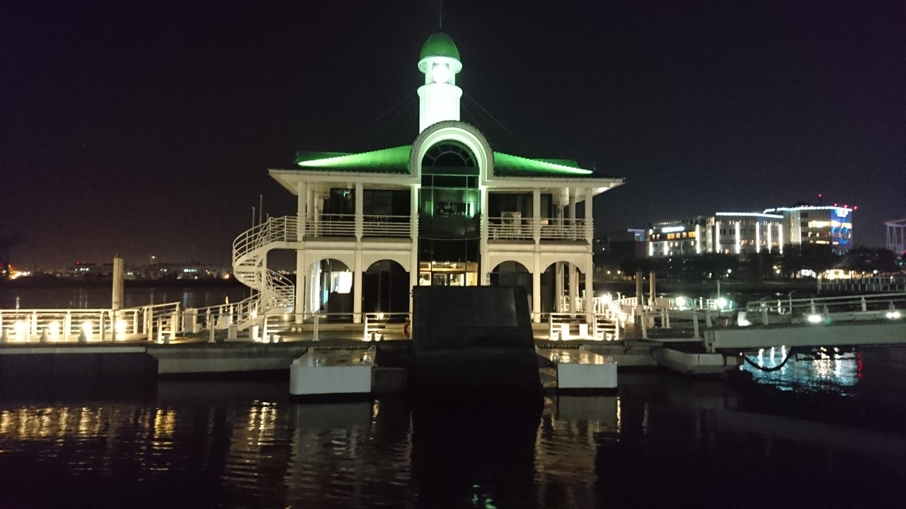夜の10時、ぷかりさん橋のレストランは営業終了していましたが、ライトアップはしており、桟橋にも入れました。