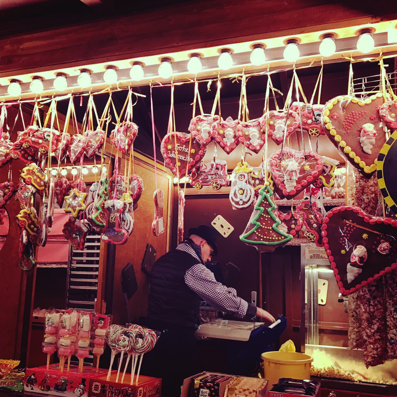 スカイビルの1階外で毎年12月に行われているクリスマスマーケットです。ドイツからやってきたマーケットは、ワッフルやサンドイッチ、スープなどのフードや民芸品のブースがいっぱい。さらにサンタさんもいて記念撮影もOK。