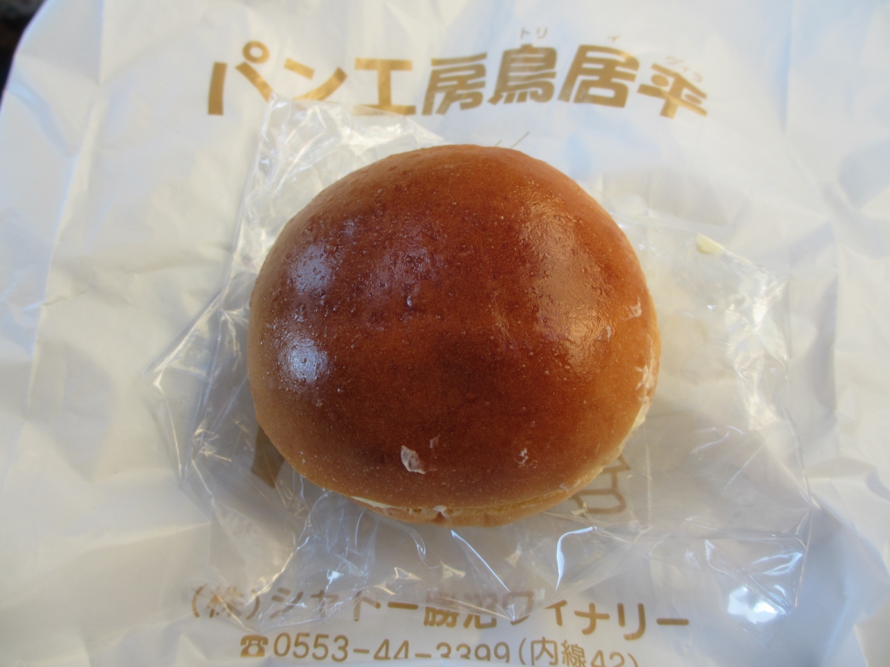 甲府盆地を中心としたバスツアーでシャトー勝沼に寄りました。添乗員さんがすすめたクリームパンを間食用に買いました。焼きたてのパンを持ってレジで会計を済ませた後、パンに切り目を入れてカスタードクリームを塗って渡されます。大きな容器に入ったクリームを見て、内心本当に美味しいのだろうかと疑ってしまいました。早速食べてみるとふわふわパンとなめらかなカスタードクリームの組み合わせが見事なクリームパンです。これで130円はお得です。シャトー見学をしないでこのパンを買いに寄ってもいいくらいです。
