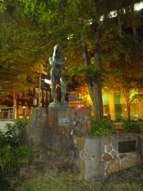 大通公園の中に数多ある像のうちの1つで、若くたくましい男性の像です。内面の強さ、意志の強さがにじみ出た面構えに思わず引き寄せられました。札幌の中心、大通り公園の中の立つブロンズ像の中でも、私好みの作品の一つです。唱歌「われは海の子」に歌われた浜辺に生きる若者を感じさせます。