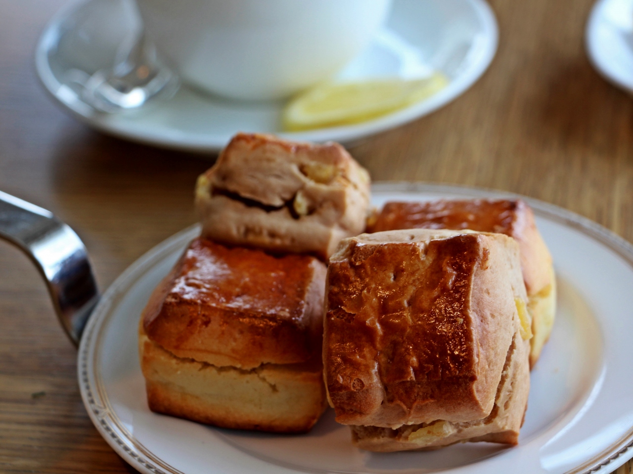 ・3段トレー以外に英国式のスコーンが付き、クロテッドクリームが絶品