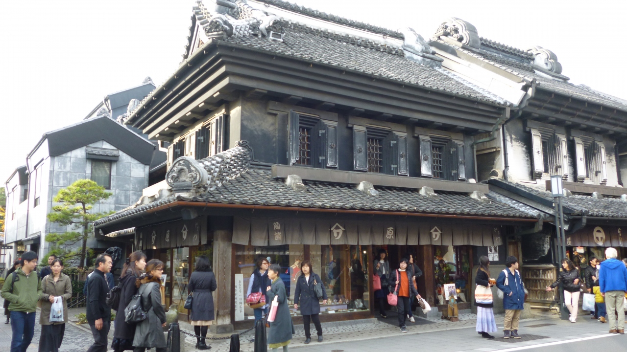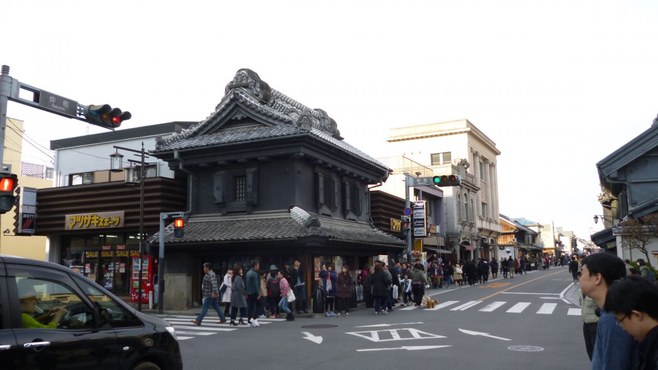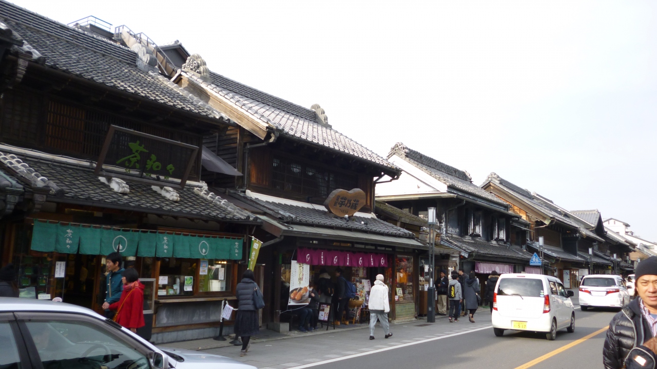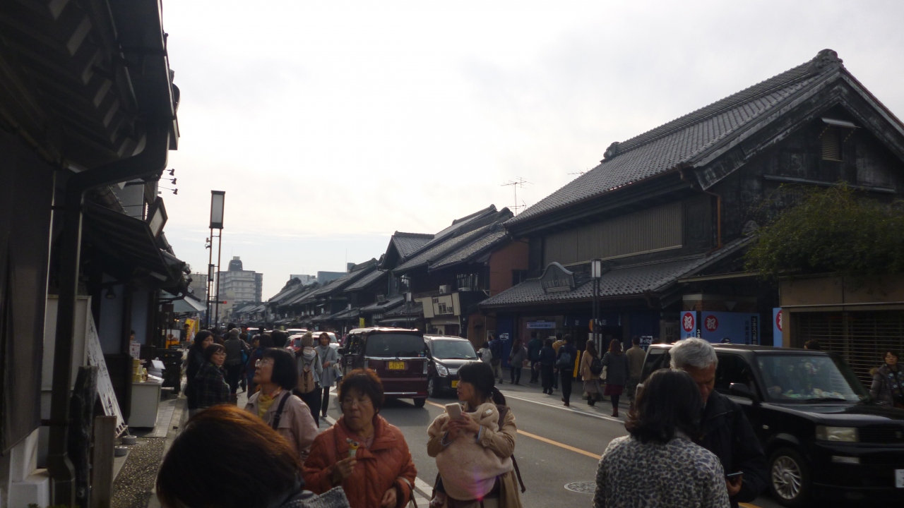 一般に日本の古い街並みはほとんどが木造ですが、ここの町は蔵造りです。明治の川越大火で焼失した経験から、耐火構造の蔵造りが採用されたとのことです。今でも30軒以上残っているそうです。街並みは綺麗ですが、通りは車が通るので注意して歩きましょう。