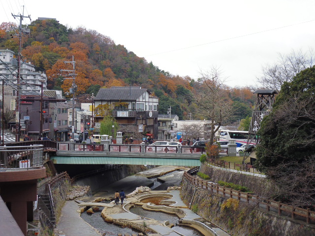 鉄道駅から有馬温泉方面に向かうと有馬川があり、そこの川底が公園になり整備されています。