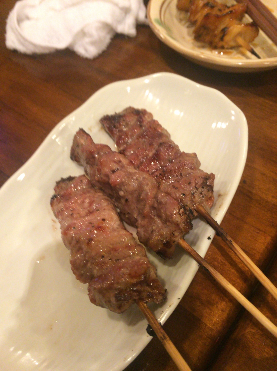 白モツ、しいたけ、ピーマンの肉詰め、これもかなりのボリュームで勧めの一品!