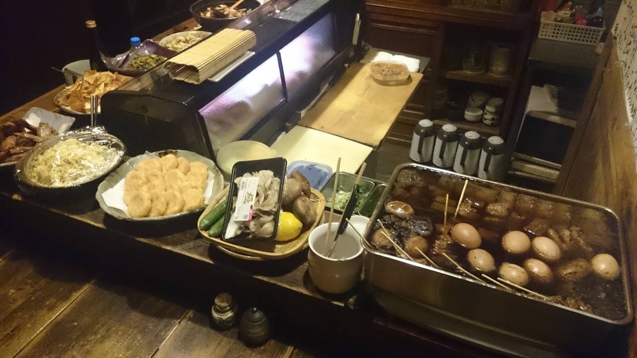 狭い路地を入っていき、くぐり戸を開けて入店する、まさに隠れ家のような店です。古民家や長屋で囲炉裏を囲むような雰囲気を味わえます。正確には囲炉裏はありませんけど、座布団が敷かれた和風カウンターでなごめました。
