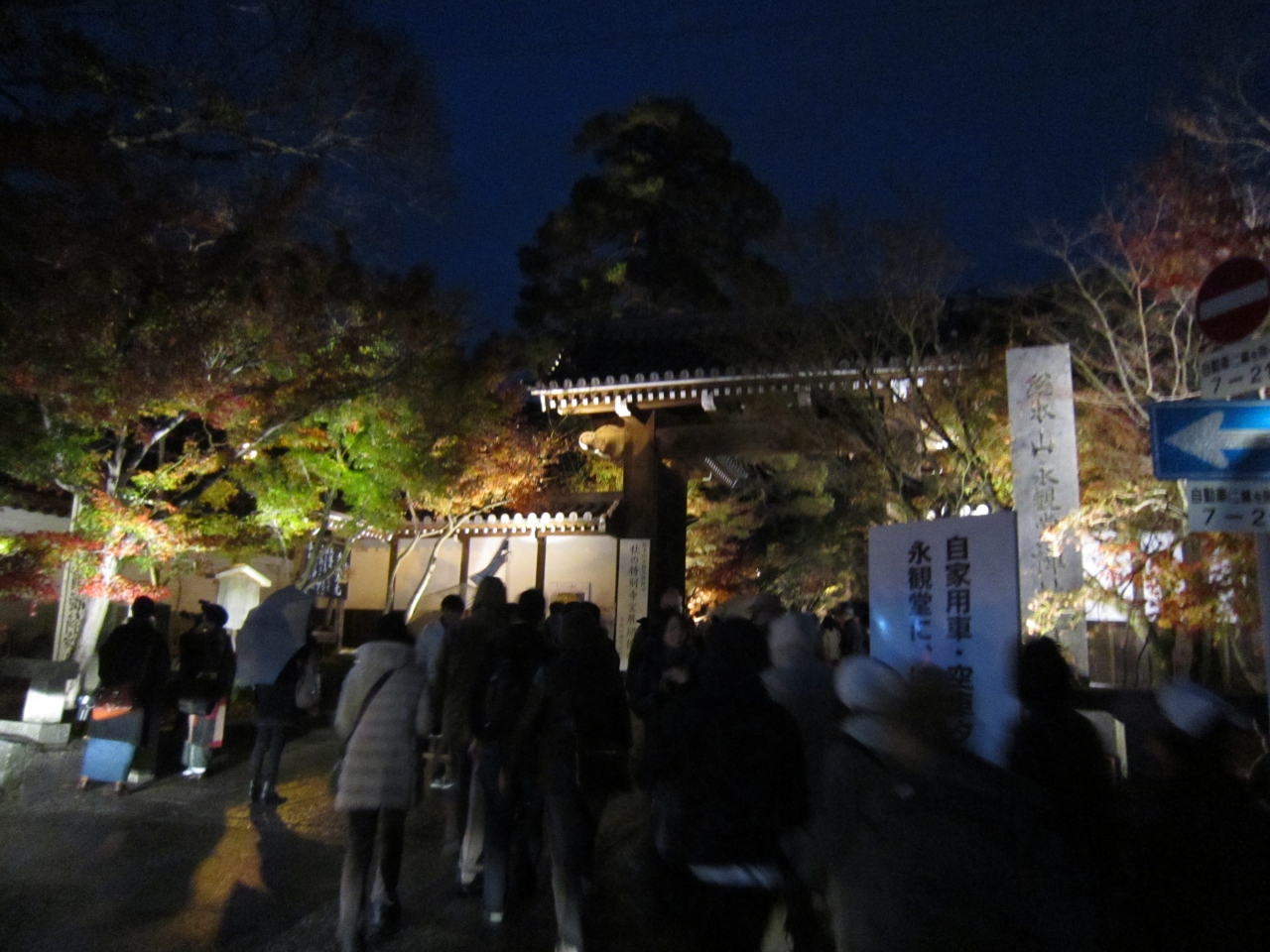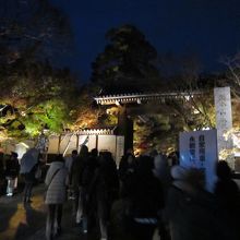夕方~夜にはライトアップの紅葉拝観が行われていて、某テーマパークのアトラクション待ち並の混雑で、入口にたどり着くまでには数百メートルの列になっていた。ただ、中はそれなりに広いので、入ってしまえばそこまで混雑しているという感じではないが、トイレなどは行列ができていた。混雑を避けたい人は注意をした方がいいと思う。